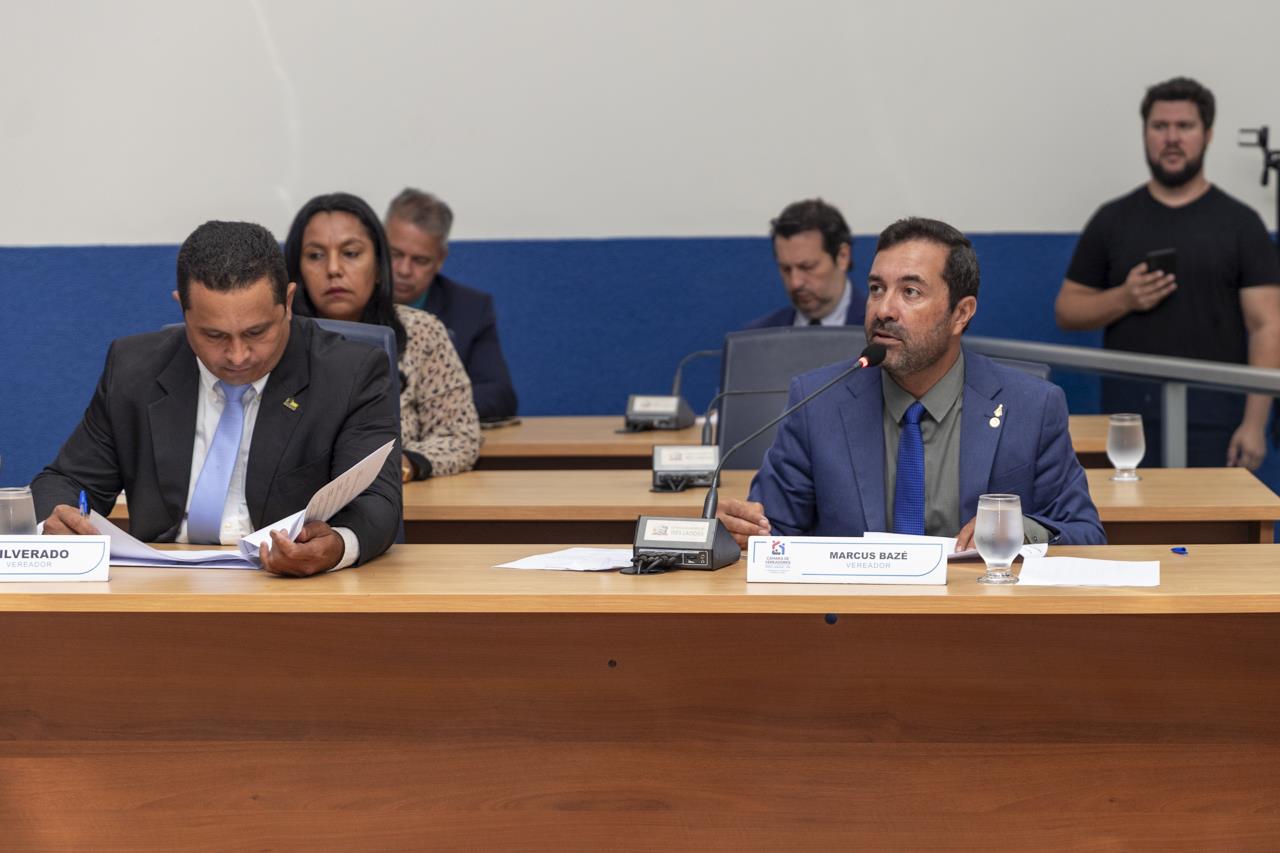 Tonhão indica plano cicloviário e regularização com acessibilidade nas calçadas. Marcus Bazé apresenta indicações para a Seintra. Mário Grespan indica manutenção de iluminação em praça. Professora Maria Diogo indica Farmácia de Manipulação Popular. Robson do Alinhamento indica melhoria para o trânsito e infraestrutura.