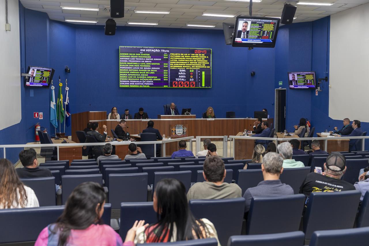 A matéria aprovada foi o PL nº180, de 28 de outubro de 2025: “dispõe sobre a autorização para doação de lotes, construção de unidades habitacionais e define critérios do conjunto habitacional de interesse social”, de autoria do executivo.