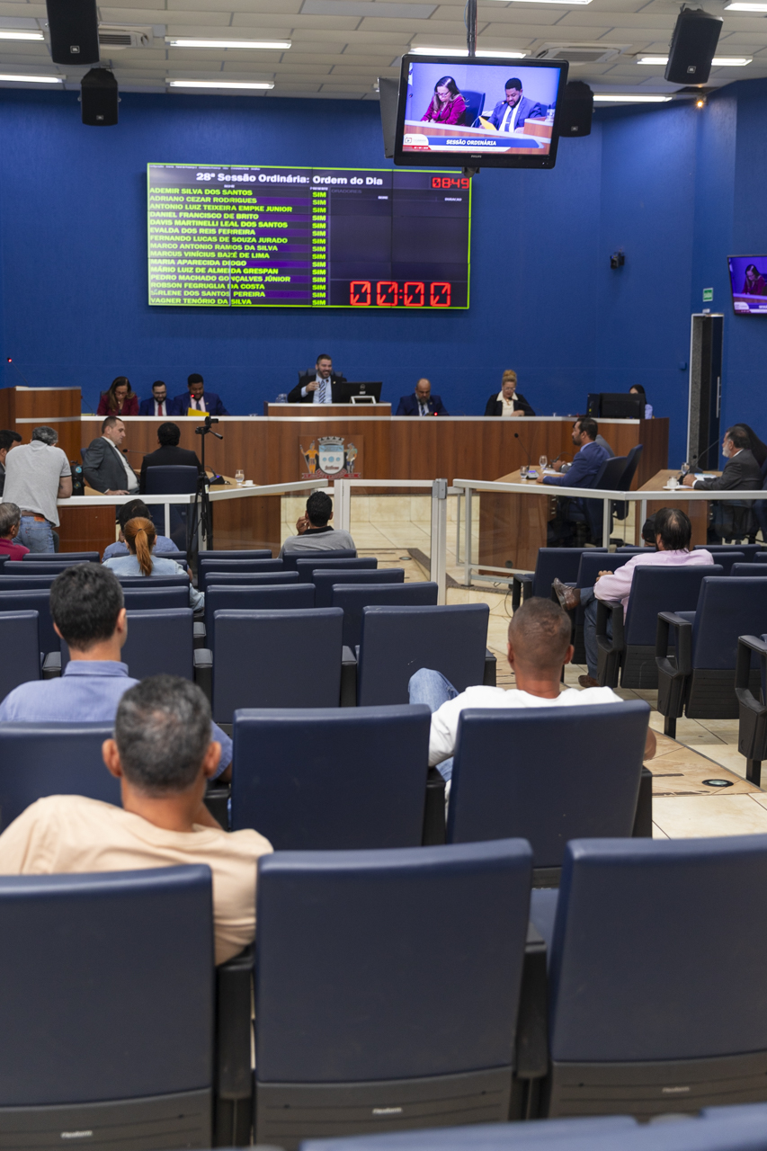 Na manhã desta terça-feira (02), durante a 28ª sessão ordinária de 2025, os vereadores analisaram 12 matérias na pauta do dia, aprovando cinco e encaminhando as demais para as comissões permanentes emitirem parecer. Os projetos aprovados dispõem sobre afetação de área na Vila Piloto, de autoria do poder executivo; e sobre mudanças no Plano de Cargos do Poder Legislativo, de autoria da Mesa Diretora.